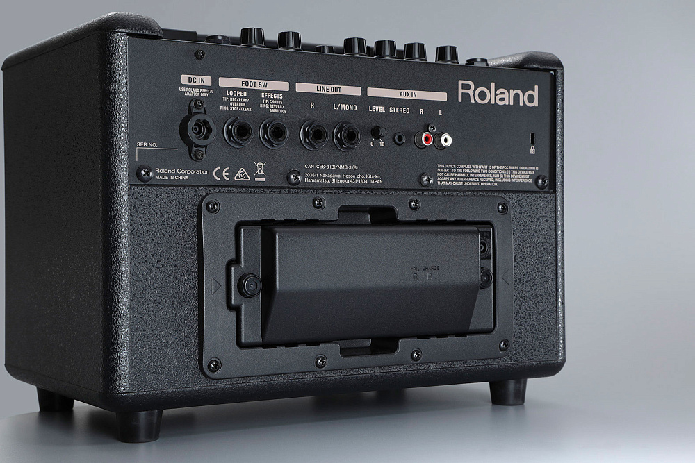 - Можно заряжать от сетевого адаптера, входящего в комплект поддерживаемой модели усилителя Roland (за исключением BA-330).