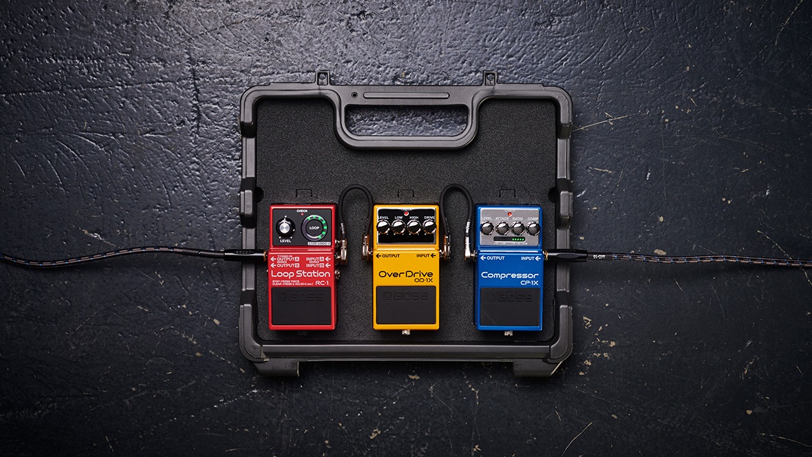 - В комплект входит кабель последовательной цепи для питания до четырех педалей через дополнительный адаптер BOSS.