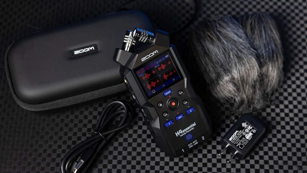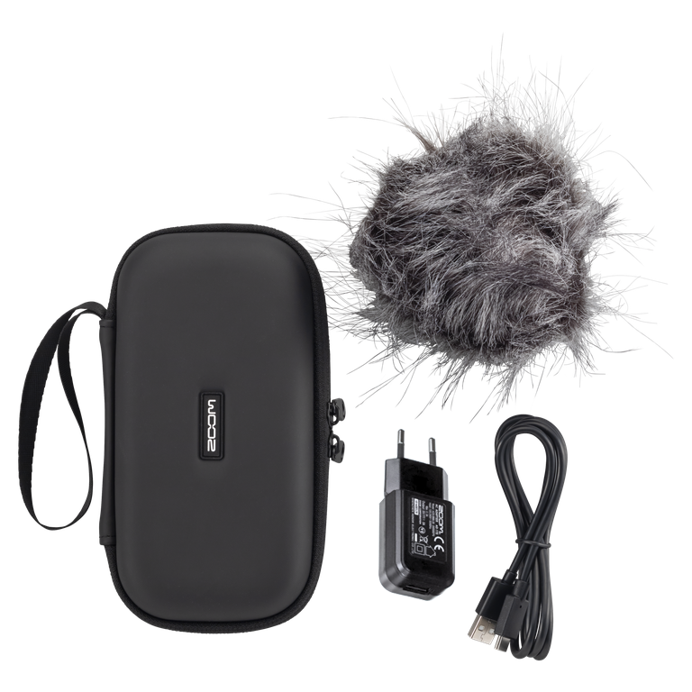 Набор аксессуаров для H4e Zoom APH-4e — аксессуары для рекордера Zoom H4Essential. Включает ветрозащиту WSU-4, мягкий чехол, сетевой адаптер AD-17E, кабель USB-C. Все необходимое для полевой записи.