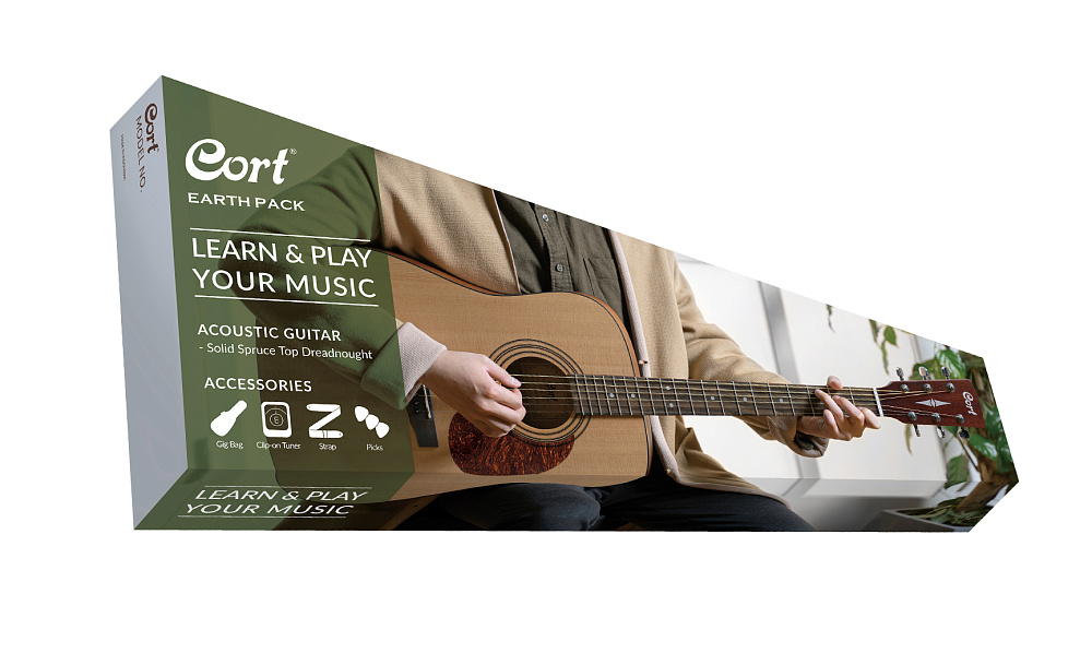 Комплект Cort Earth Pack подарит незабываемые впечатления от игры на гитаре всем начинающим музыкантам, которым нужен качественный инструмент в полном стартовом пакете. Earth Pack включает в себя гитару Earth 60 с особенностями, которые трудно найти в этом ценовом диапазоне. Earth 60 - это полноразмерный дредноут с верхней декой из массива ели и задней декой и обечайкой из красного дерева, что обеспечивает великолепные верхние частоты и теплое, сбалансированное звучание. Гитара создана теми же мастерами, которые производят модели Cort более высокого уровня. В комплект Earth Pack также входят медиаторы, чехол и электронный тюнер, которые помогут вам сразу же начать играть.