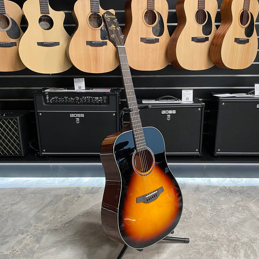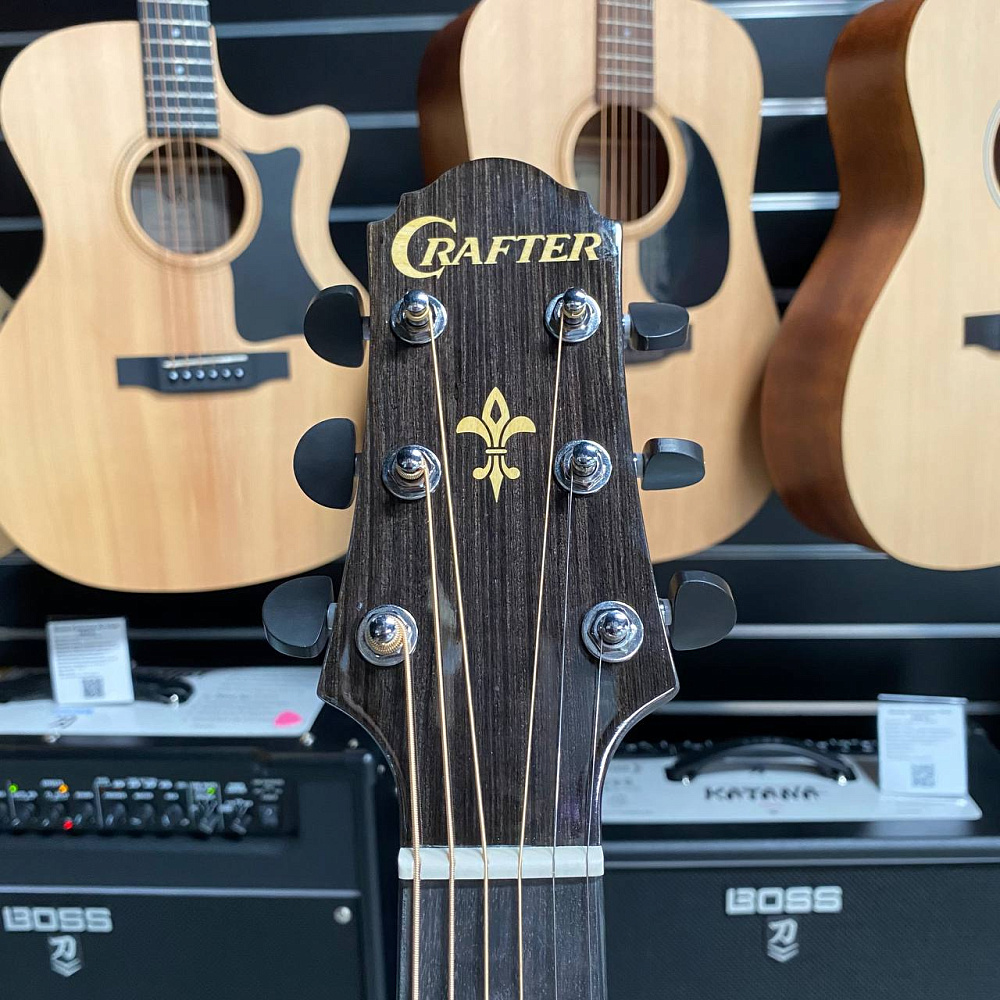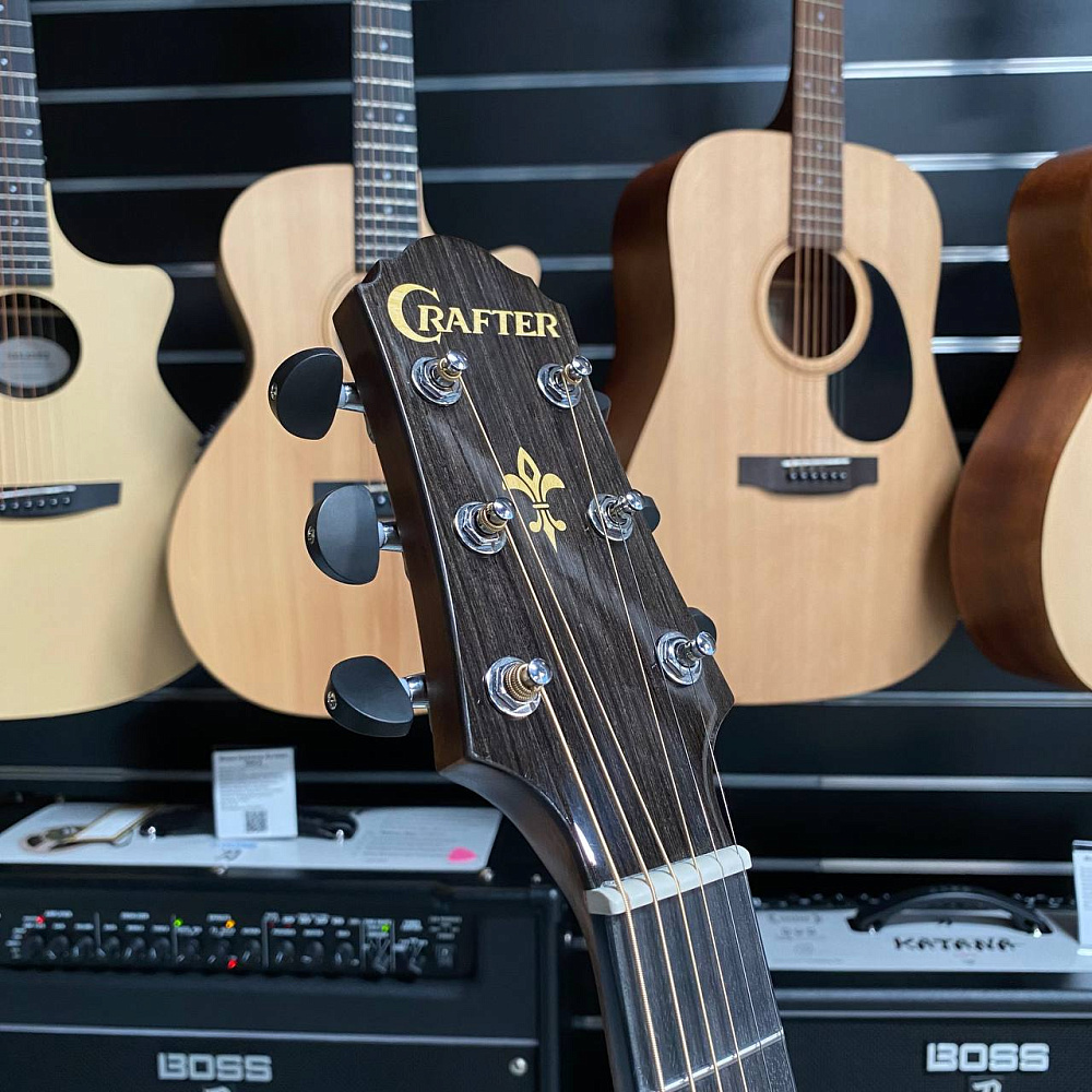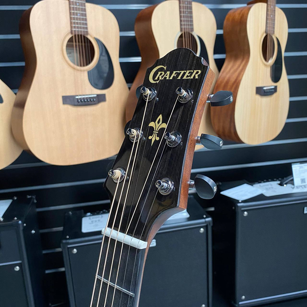 Акустическая гитара CRAFTER HD-250/VS — дредноут с верхней декой из ели Энгельмана. Задняя дека и обечайки из красного дерева. Громкое и четкое звучание с хорошим балансом. Красное дерево добавляет мягкости и глубины. Надежный инструмент для сцены и студии.