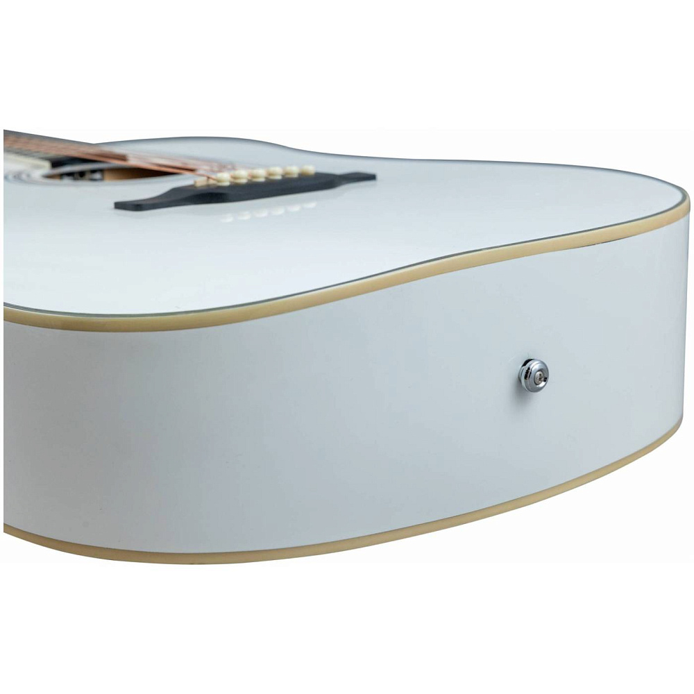 Акустическая гитара FLIGHT AD-200 WH — белый дредноут с контрастным дизайном. Верхняя дека из ели, корпус из красного дерева. Удобный скос под правую руку. Хитовый инструмент для музыкантов, ценящих стиль, громкий звук и доступную цену.