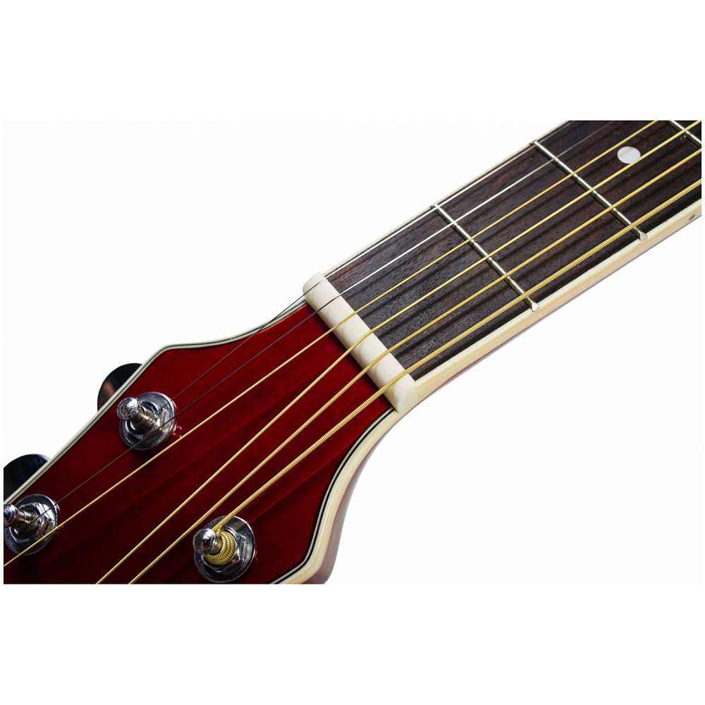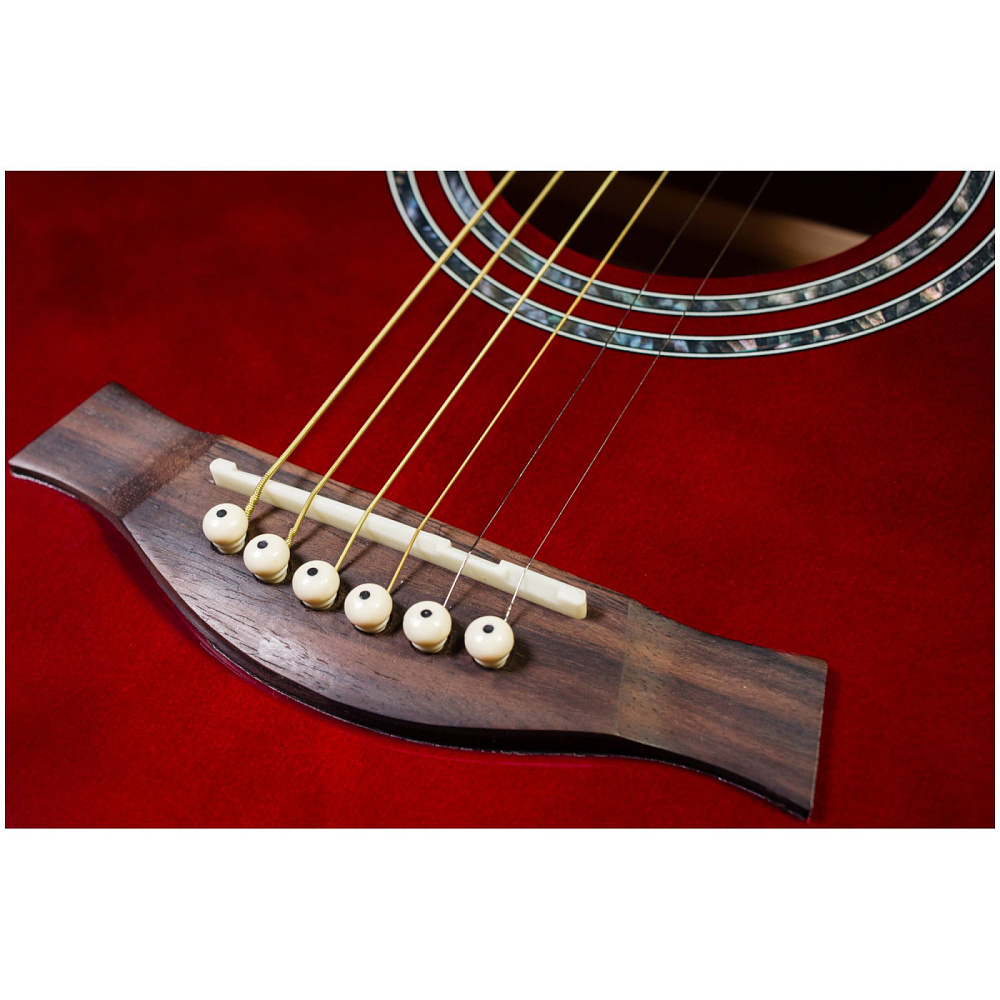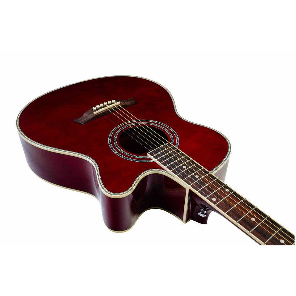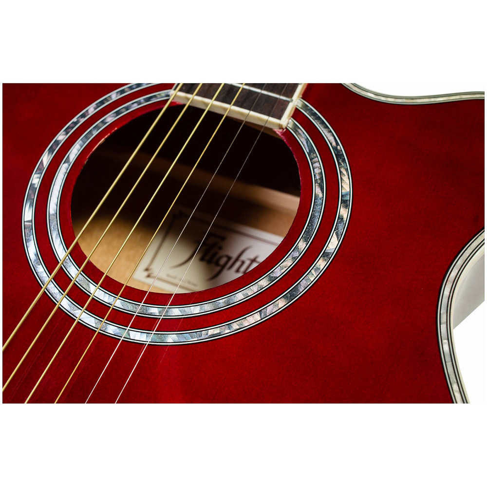 Акустическая гитара FLIGHT F-230C WR — фолк-гитара с вырезом цвета красного вина. Уменьшенный корпус, верхняя дека из ели, корпус из агатиса. Металлические струны, яркое звучание. Идеальна для начинающих и как второй инструмент.