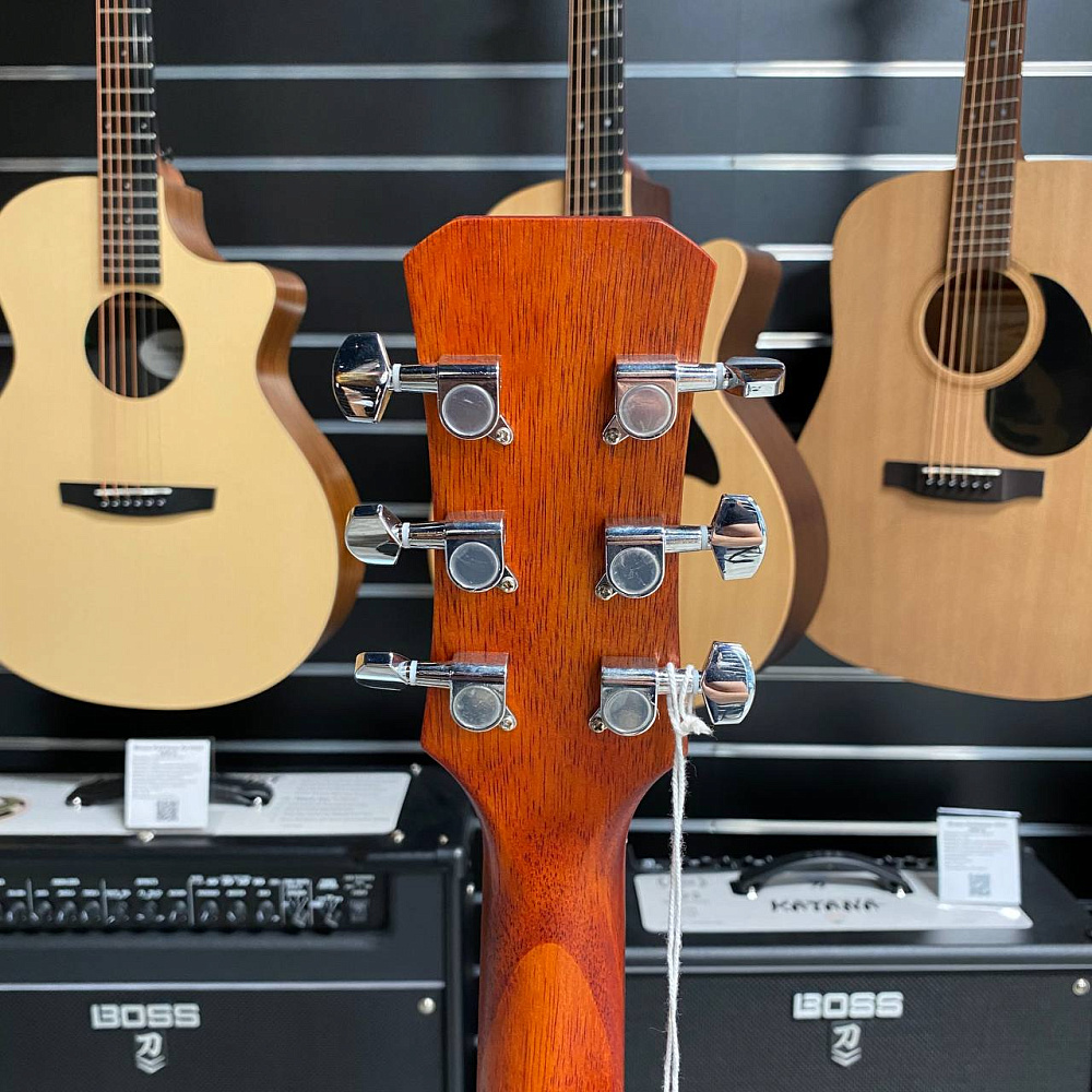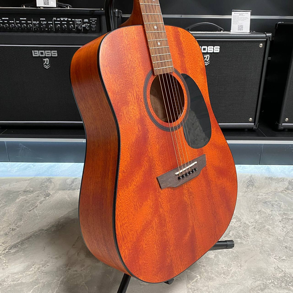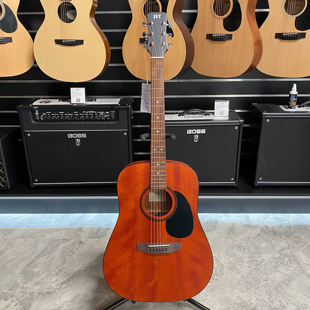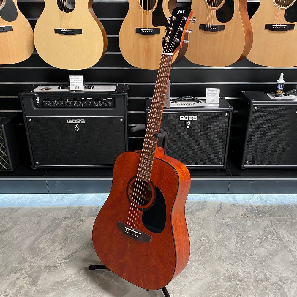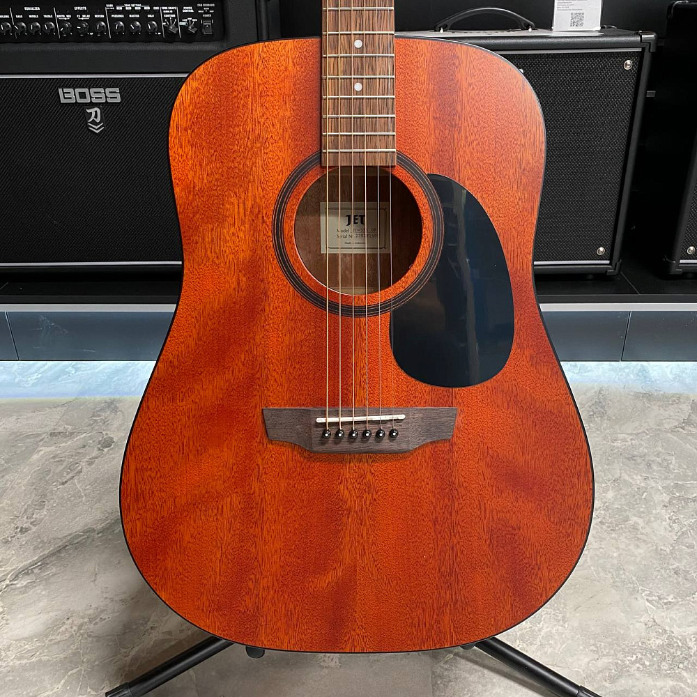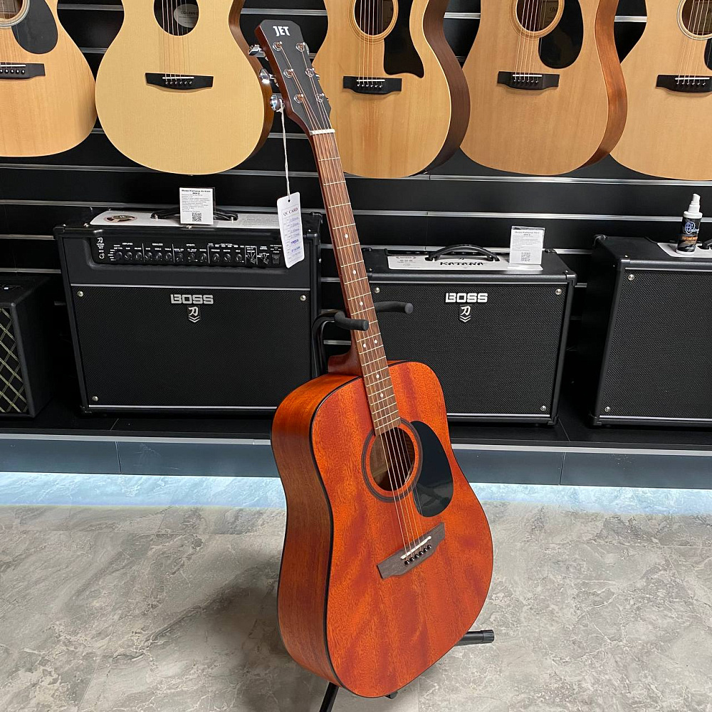 У модели JET JD-355 OP верхняя дека, обечайка и нижняя дека – все выполнено из махагони. В сочетании с большим корпусом дредноут и популярной отделкой Open pore это практически универсальный инструмент. Чистый и ровный звук с большим количеством средних частот, прекрасно подойдет для игры в сопровождении других инструментов. Гитары из древесины красного дерева обладают хорошо контролируемой отдачей, которая прекрасно сочетается с мощной атакой исполнителя – такие инструменты прощают ошибки, которые возникают в начале творческого пути гитариста, так что их уверенно можно рекомендовать и начинающим музыкантам.