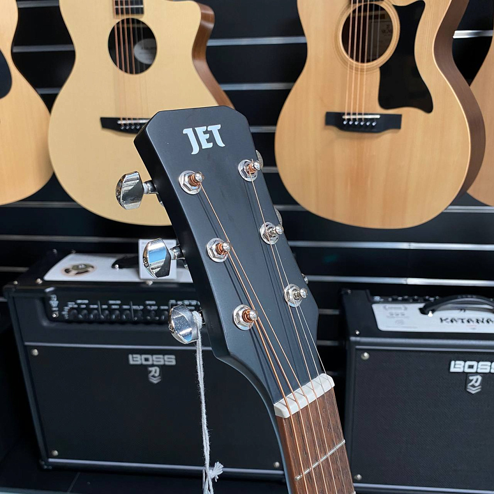 Акустическая гитара JET JF-155 BKS — акустическая гитара в корпусе «концерт» черного матового цвета. Верхняя дека из ели, задняя дека и обечайки из красного дерева. Компактный и удобный корпус. Четкое и артикулированное звучание, идеальное для пальцевой техники. Накладка грифа из мербау. Отличный выбор для начинающих.
