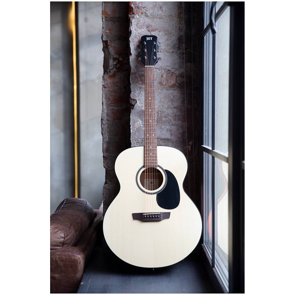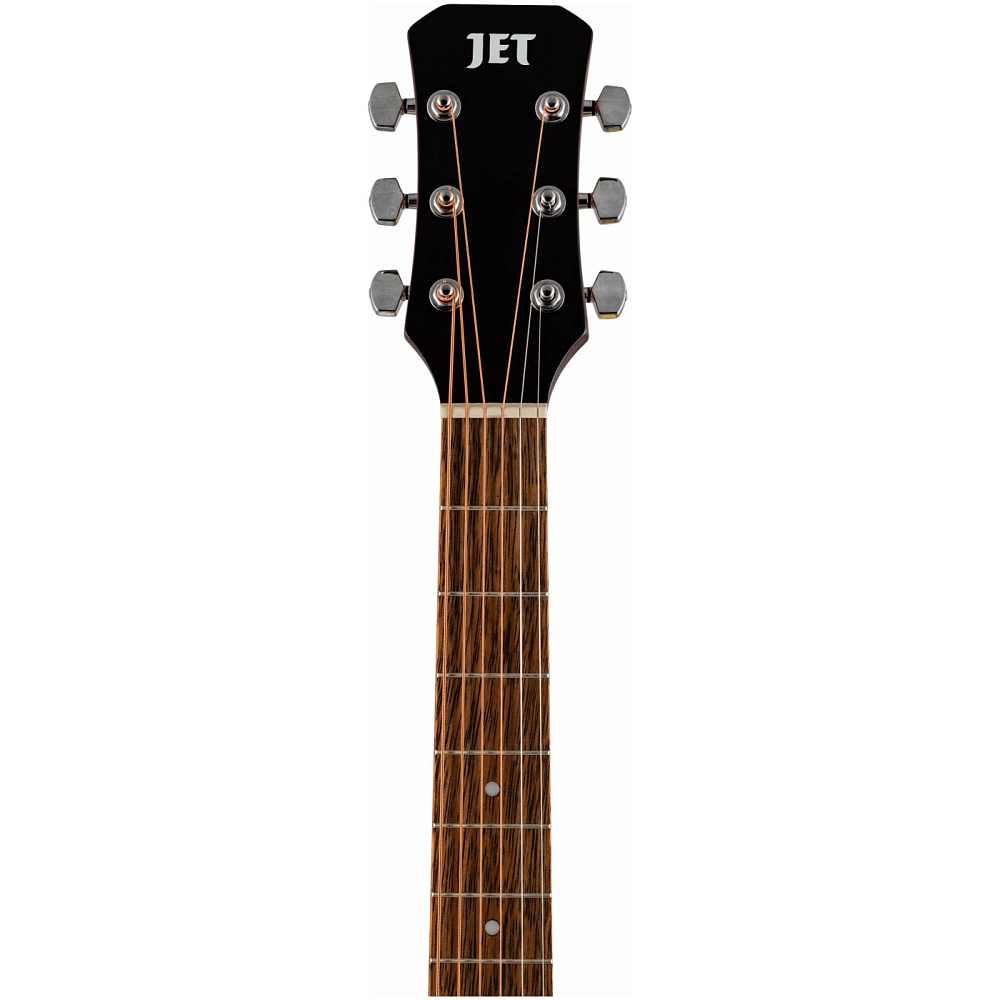 Акустическая гитара JET JJ-250 OP — гитара-джамбо с ультратонким покрытием open pore. Мощный и объемный звук, легкая и отзывчивая дека. Бархатистая текстура поверхности. Накладка грифа из прочной древесины мербау для качественного звукоизвлечения.