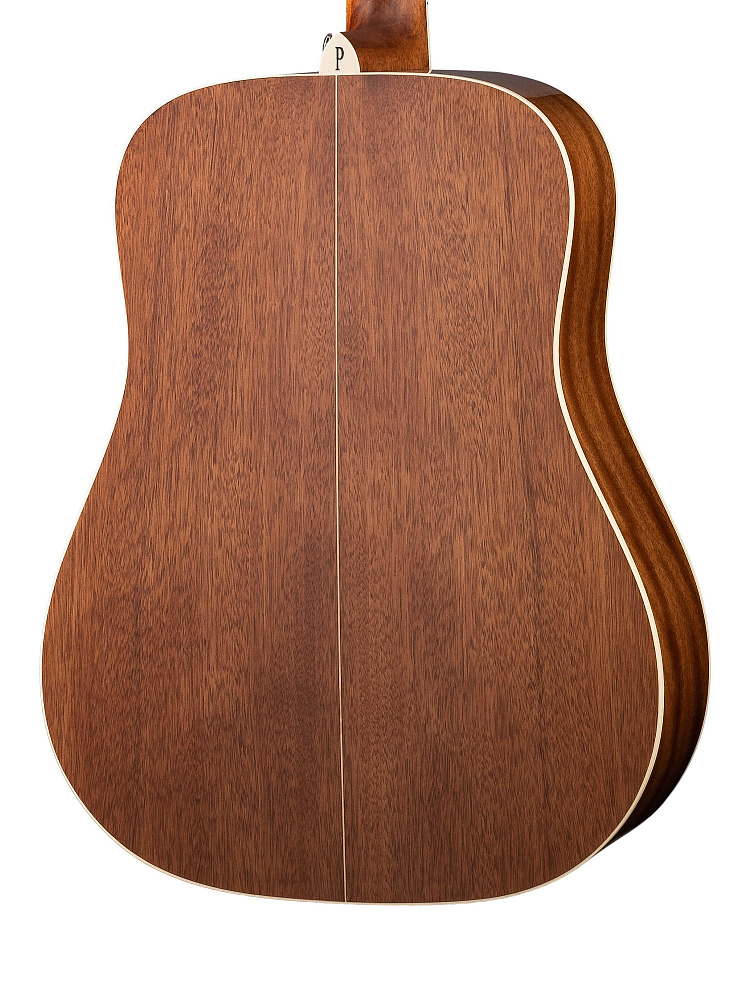 Верхняя дека из тщательно отобранной древесины ситхинской ели, обечайки из шпона махагони и задняя дека из массива махагони обеспечивают общую жесткость и прочность корпуса гитары.