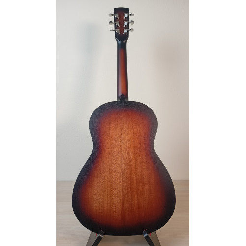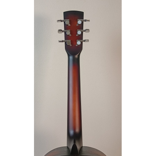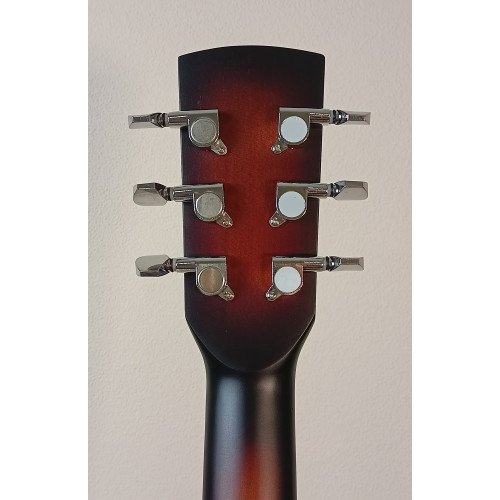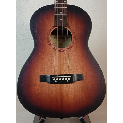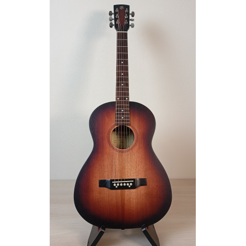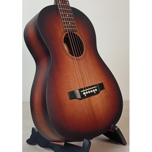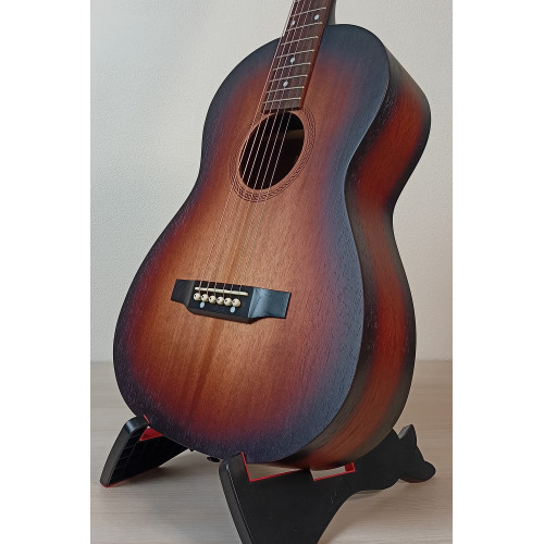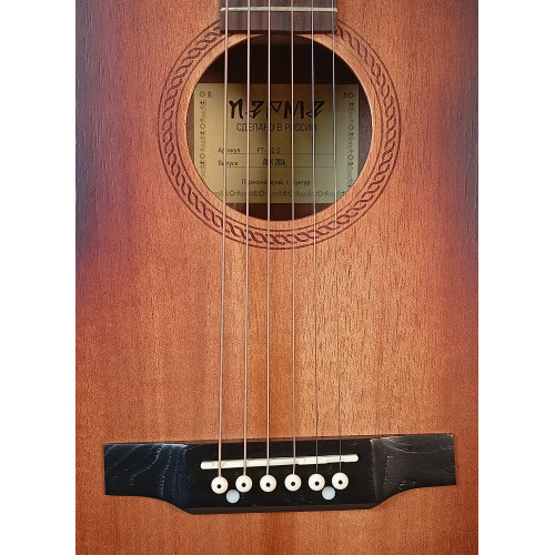 Акустическая гитара Парма FT-02 S — гитара 3/4 формата фолк цвета санберст. Верхняя дека и корпус из шпона красного дерева. Гриф из массива клена, мензура 585 мм. Матовая отделка. Уменьшенный размер подходит для детей или в качестве тревел-гитары. Производство Россия.