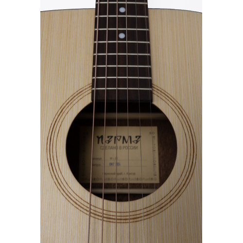 Акустическая гитара Парма М-01 — отечественная акустическая гитара дредноут. Верхняя дека из елового шпона, корпус из красного дерева, гриф из массива клена. Мензура 650 мм, 21 лад, ширина верхнего порожка 43 мм. Натуральный матовый цвет. Надежный инструмент для начинающих от российского производителя.