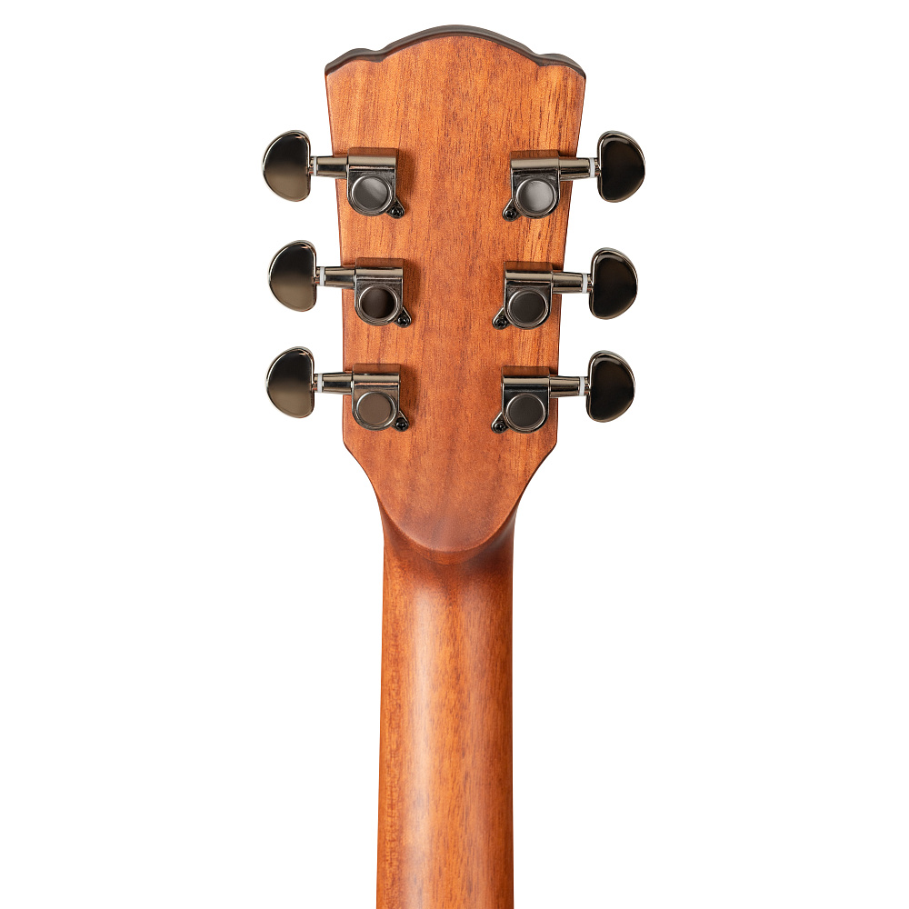 - Гриф из красного дерева: красное дерево традиционно считается лучшей древесиной для изготовления грифа акустических гитар. Профиль грифа идеально подобран для максимального удобства и правильной постановки рук.