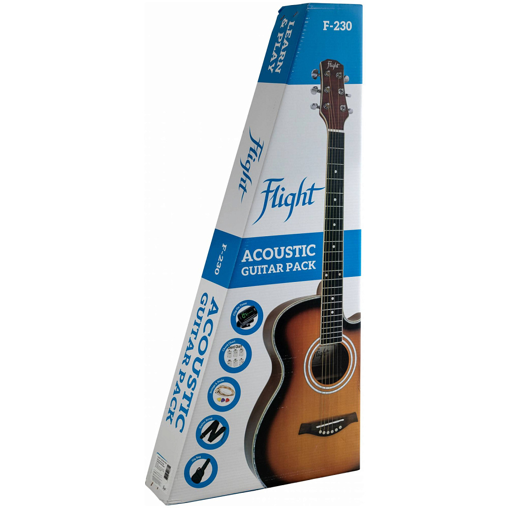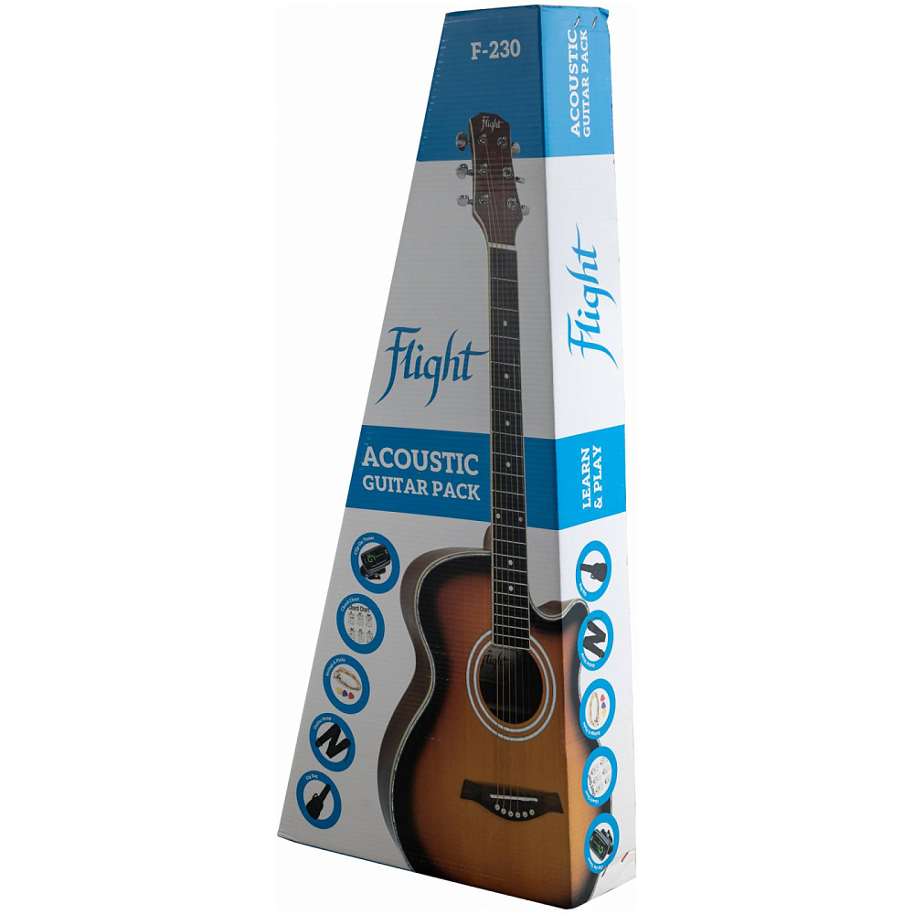 FLIGHT F-230 NAT PACK – это комплект с акустической гитарой натурального цвета и набором необходимых аксессуаров.