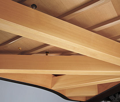 Дека — это сердце пианино. Его цель — преобразовать вибрации струн фортепиано в насыщенный, звучащий тон. Kawai использует только прямолинейные, распиленные на полосы части ели для деки серии GL. Каждая полоса имеет специальным образом заужена, чтобы дека могла более чувствительно воспринимать и передавать звучание струн по всей поверхности. Только те деки, которые соответствуют нашим строгим стандартам резонанса или превосходят их, выбраны для использования в роялях серии GL.
