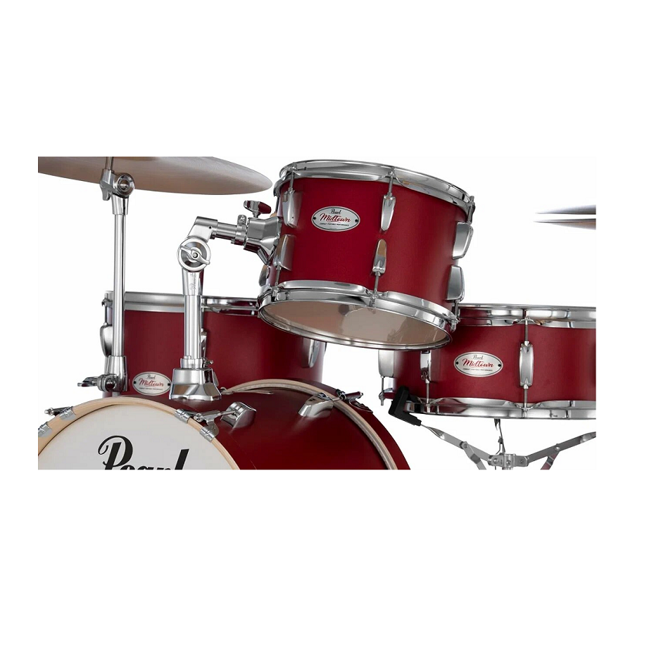 Барабаны Pearl серии Midtown оснащены всем необходимым для исполнения в ограниченном пространстве. Пробивная теплота звучания корпуса из азиатского тополя идеально подходит для заполнения небольших площадок необходимым количеством контролируемой мощности. Midtown также является идеальным решением для исполнения в жилых помещениях, живых трансляций и уличных выступлений. Корпуса барабанов толщиной 7 мм, склеенные из шести слоёв азиатского белого тополя, обеспечивают проекцию, атаку и оптимальную тональную мощность. Кромки корпусов, обработанные под углом 45° идеально соприкасаются с пластиками по всей поверхности, формируя богатый тембральный характер барабана. Установки обновлённой серии Midtown могут похвастаться наличием минимально необходимого набора стоек. В комплект поставки входят стойка для хай-хета, тарелки, малого барабана, педаль для бас-барабана, а также регулируемый держатель для тарелки, устанавливаемый на бас-барабан. Также в комплекте подпорка для бас-барабана, с помощью который маленький бас-барабан диаметром 16" может быть установлен так, что колотушка педали будет бить в центр пластика, что положительно сказывается на тоне и ощущениях для исполнителя. Малый барабан установки Midtown размером 13"х5,5", изготовленный из той же древесины, при своих небольших габаритах может похвастаться широким диапазоном настройки. Прекрасно выдаёт как низы, так и резкие высокие акцентированные удары.