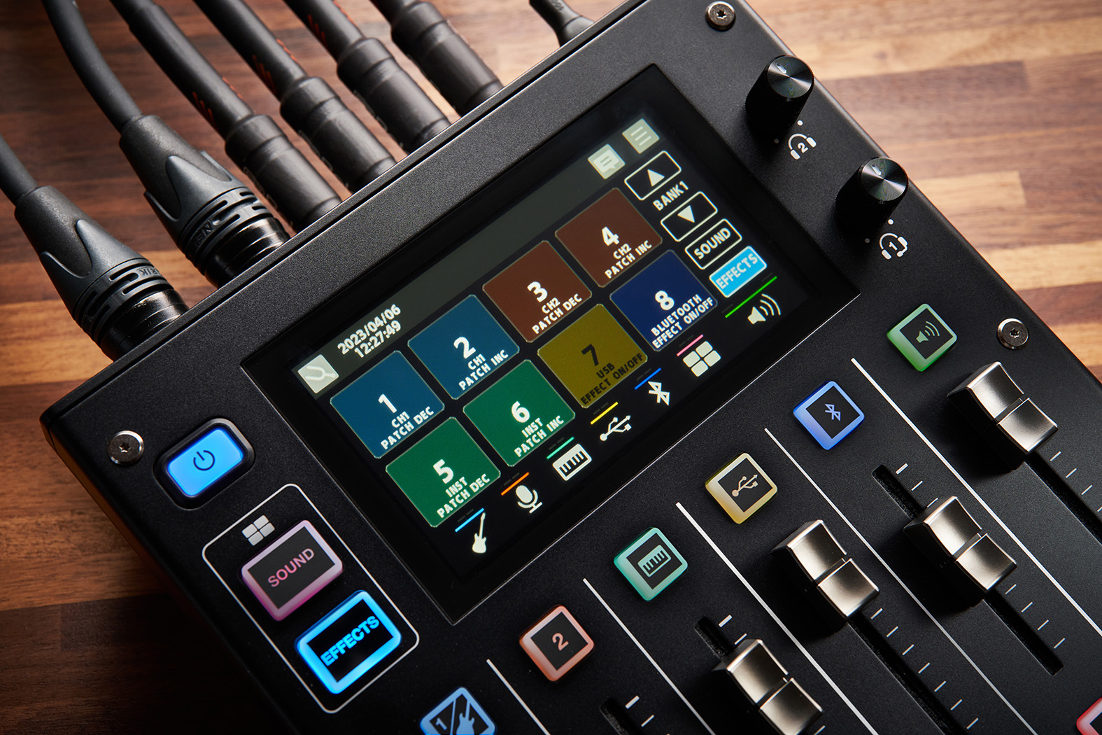 Благодаря цветному сенсорному дисплею и интуитивно понятным элементам управления вы можете управлять Gigcaster 5, не используя ничего, кроме аппаратуры. Микшируйте источники с помощью фейдеров и кнопок отключения звука, просматривайте уровни сигнала на экране, получайте быстрый доступ к эффектам и редактируйте их, применяйте шумоподавление, де-эссинг и другие инструменты для получения полированного звука. С помощью приложения Gigcaster 5 можно пойти еще дальше, настраивая различные параметры на экране компьютера в процессе работы.