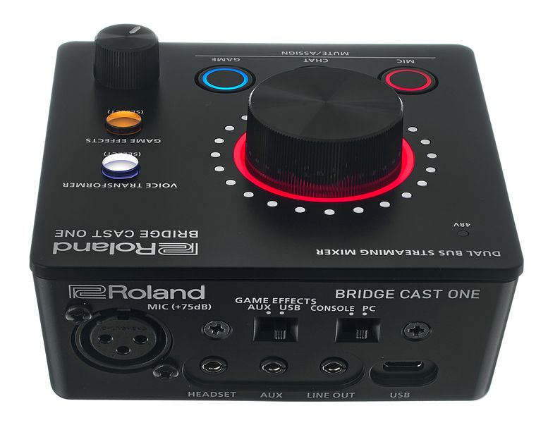 Roland BRIDGE CAST ONE — компактный аудиоинтерфейс, разработанный специально для стримеров и геймеров, обеспечивающий высококачественную обработку звука с разрешением 24 бита и частотой дискретизации до 96 кГц. Устройство оснащено XLR микрофонным входом с фантомным питанием (+48 В) и усилением до +75 дБ, что позволяет использовать профессиональные динамические и конденсаторные микрофоны без необходимости в дополнительных предусилителях. Благодаря двойной шине микширования пользователи могут создавать независимые миксы для онлайн-трансляций и личного мониторинга. Встроенный 32-битный DSP обеспечивает реальную обработку эффектов, включая подавление шума, компрессию, эквалайзер, де-эссер и реверберацию, а также голосовые эффекты из серии Roland VT. Управление устройством осуществляется через приложение BRIDGE CAST, предоставляющее расширенные аудиоинструменты и доступ к библиотеке фоновой музыки и звуковых эффектов без лицензионных отчислений через BGM CAST на Roland Cloud. BRIDGE CAST ONE совместим с ПК, Mac, а также игровыми консолями Sony PlayStation 5 и Nintendo Switch.