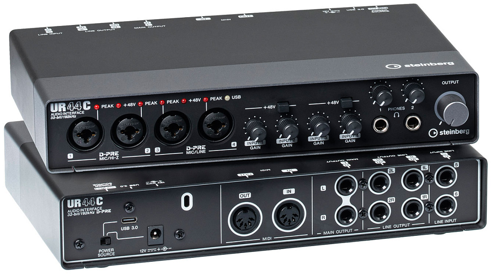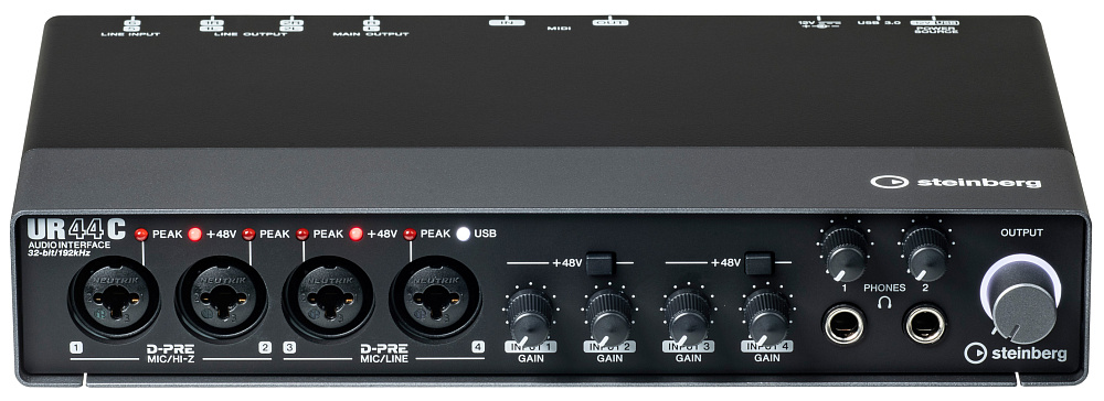 Steinberg UR44C – это профессиональный USB-аудиоинтерфейс, развивающий функционал звуковой карты UR44 и являющийся средней моделью в новой линейке «C». Устройство предлагает пользователям улучшенные технические характеристики, например, диапазон усиления и мощность выходов для наушников, конверторы, функционирующие в форматах до 32 бит/192 кГц, а также поддержку интерфейсов USB 3.0 и 3.1 для наиболее быстрого обмена данными с компьютером.