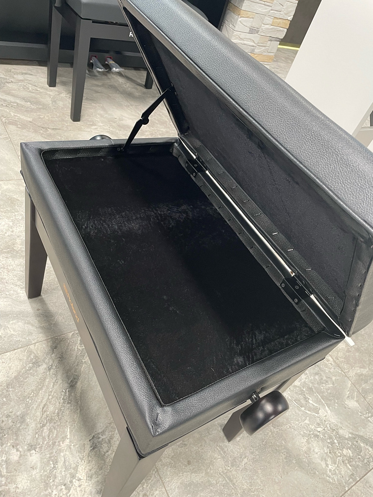 Банкетка для пианино Roland RPB-400BK — классическая скамья с регулируемой высотой и ящиком для хранения нот. Прочная деревянная конструкция, мягкое сиденье для длительных занятий. Высота 48–58 см, вес 10 кг.