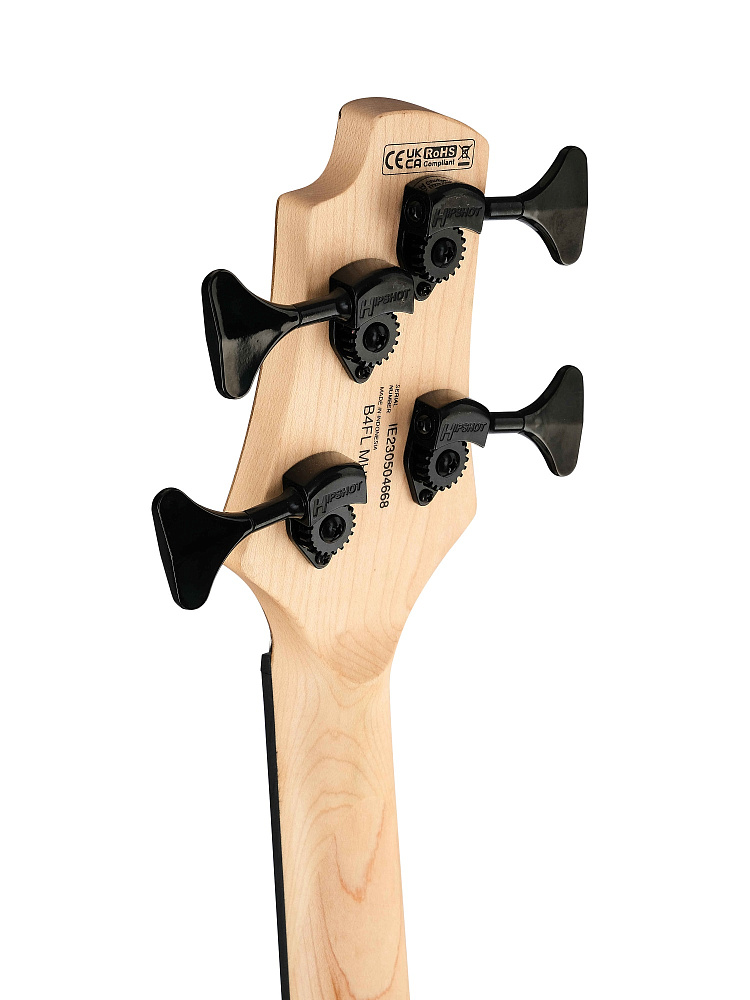 Гитара B4FL-MHPZ оснащена колковой механикой Hipshot Ultralite (классическое передаточное число 1:20), изготовленной из сплава цинка с алюминиевыми валами, что позволяет снизить вес колков на 30%, улучшить баланс и точность настройки.