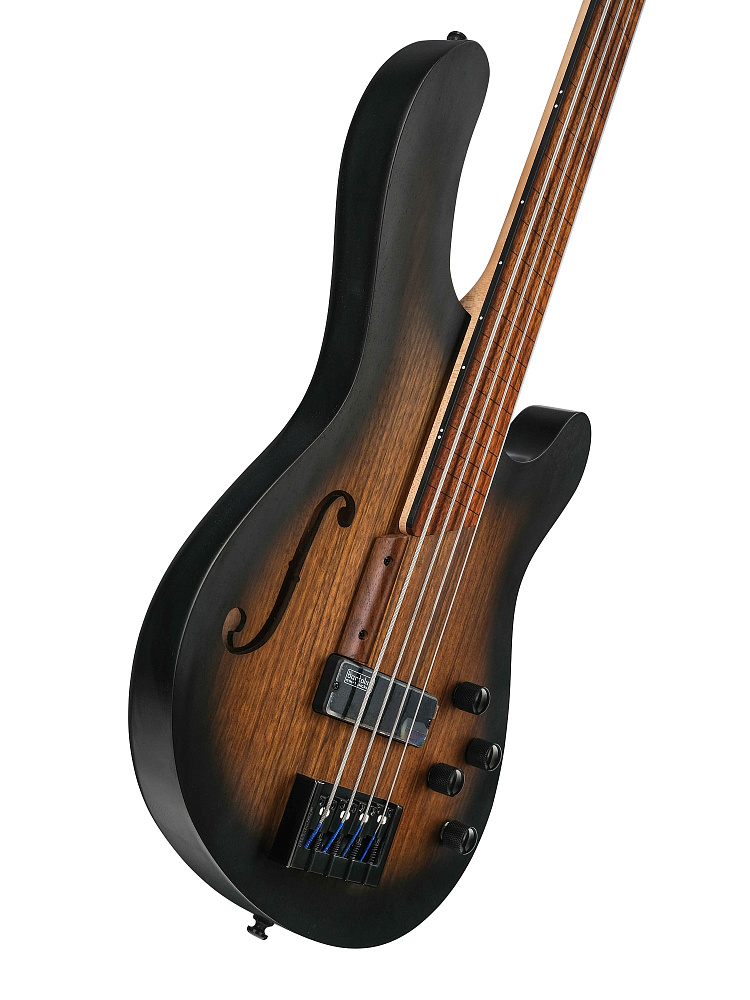 Корпус из красного дерева выполнен с полой камерой, и топ из черного дерева с классической эфой. Инструмент со стильным внешним видом и глубоким, органичным и пробивным басовым звучанием.