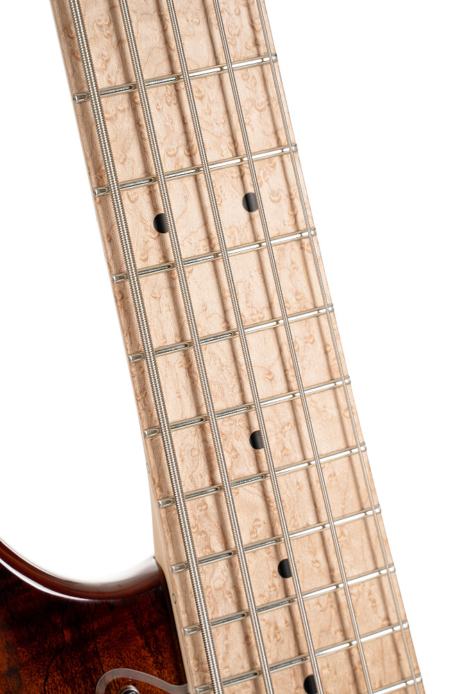 Визуально ошеломляющий топ из "подгнившего" клена расширяет динамический диапазон инструмента. Прозрачная защитная накладка позволяет продемонстрировать всю красоту корпуса.