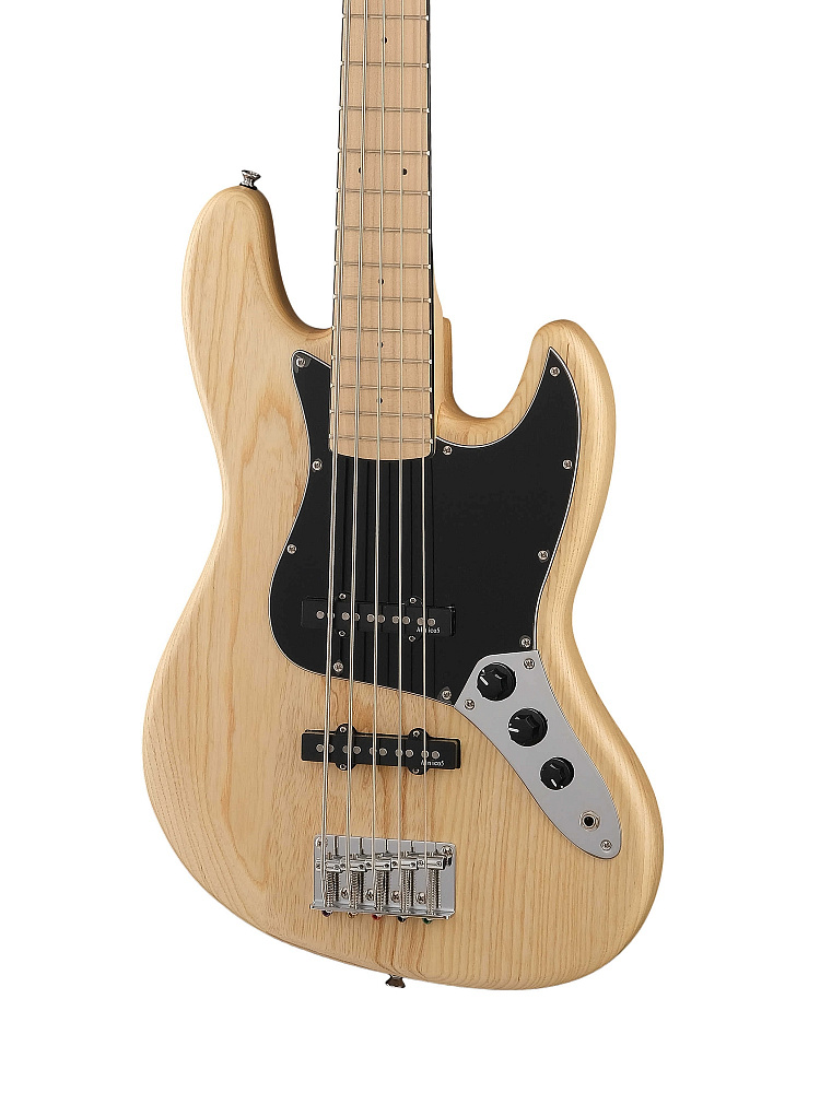 5-струнная бас-гитара Prodipe JMFJB80MAASH5C (JB type). Корпус из ясеня, кленовый гриф и накладка. Отделка «открытые поры» подчёркивает текстуру дерева. Расширенный диапазон и звукосниматели Alnico V для современных бас-линий.
