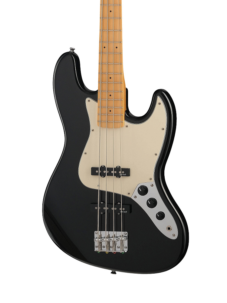 Бас-гитара 4-х струнная. Корпус: липа. Гриф: клен. Звукосниматели: Alnico V, два сингла. Отделка: классический лак. Цвет: черный.