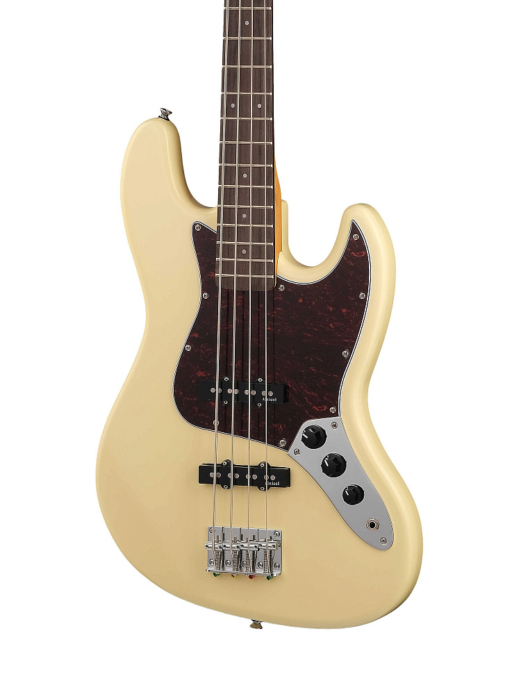 Бас-гитара JB type, 4 струны. Корпус: липа. Гриф: клен. Накладка грифа: искусственный палисандр. Цвет: белый Vintage White.