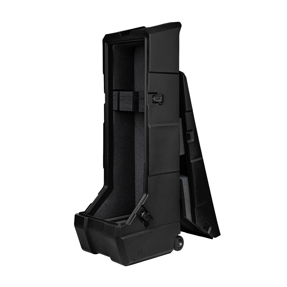 - Может превращаться в стойку для гитар на сцене: крышка крепится к задней части кейса с помощью сильных магнитов.
