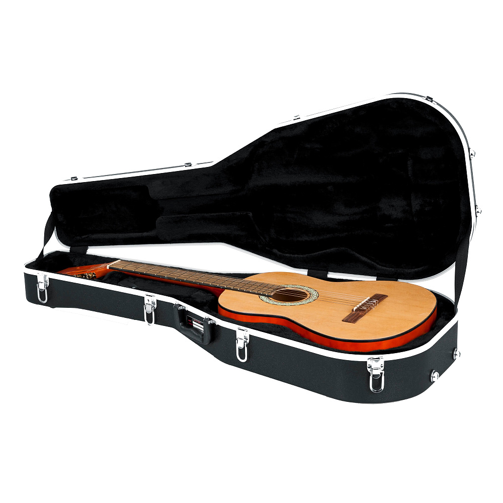 Кейс для классической гитары GATOR GC-CLASSIC — пластиковый кейс с алюминиевой обшивкой для классических гитар. Прочное болтовое крепление ручки, внутренняя защита из полиуретановой пены, запирающиеся замки. Легкий и надежный.