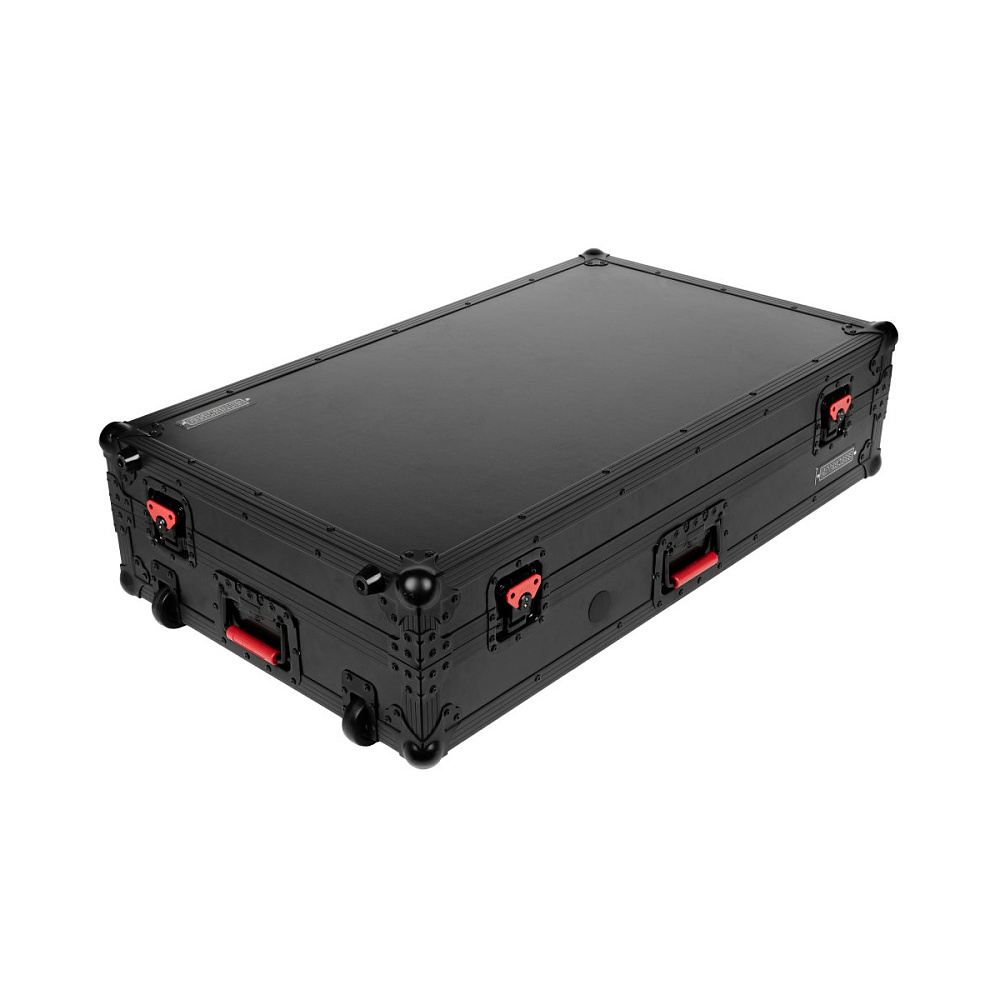 Кейс изготовлен из высококачественной ламинированной фанеры и оснащён усиленной фурнитурой коммерческого класса, рассчитанной на интенсивную эксплуатацию. Стальные угловые накладки (ball corners) защищают самые уязвимые места от ударов. Визитная карточка серии ONYX — красные утопленные поворотные замки (recessed twist latches) — надёжно фиксируют крышки и предотвращают случайное открытие во время перевозки.
