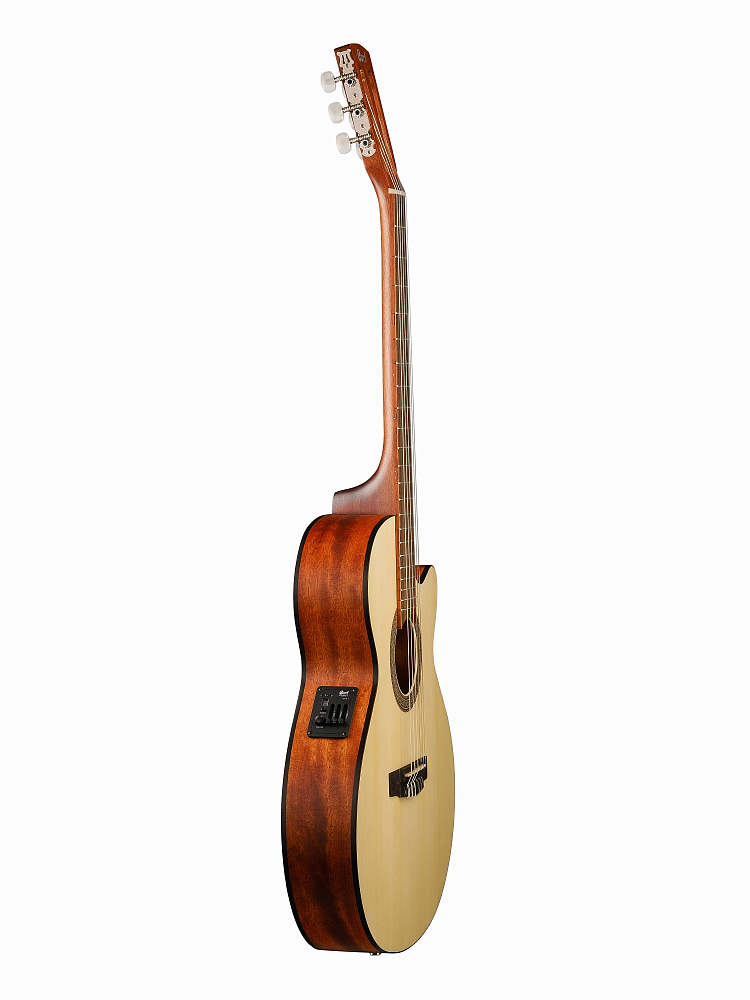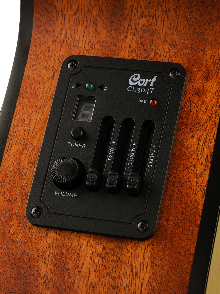 Электроакустическая гитара Cort CEC1-OP — классическая электроакустическая гитара с нейлоновыми струнами. Верхняя дека из кедра, задняя дека и обечайка из красного дерева. Тонкий корпус с вырезом. Электроника Cort CE304T EQ. Верхний порожек шириной 45 мм. — Гибридная модель для любителей звучания нейлона.