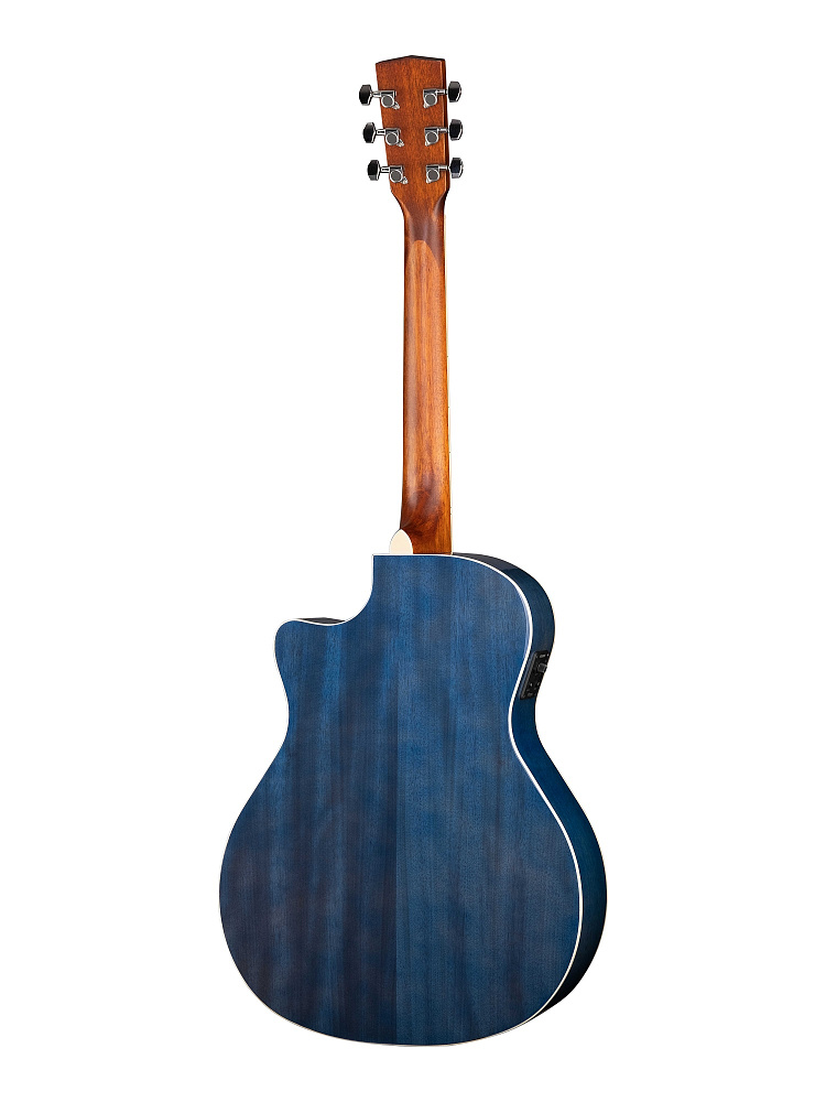 Электроакустическая гитара Cort GA-QF-CBB — электроакустическая гитара Grand Auditorium с вырезом. Верхняя дека из волнистого клена. Задняя дека и обечайка из красного дерева. Электроника Fishman ISYS T. Цвет прозрачный синий (Crystal Blue Burst). Яркое и плотное звучание.