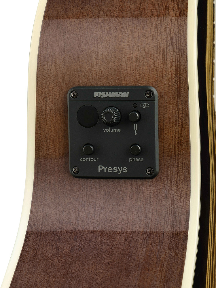 2-полосный эквалайзер, светодиодный тюнер и управление фазой вместе с пикапом Sonicore для фирменного звучания Fishman — естественного и органичного.