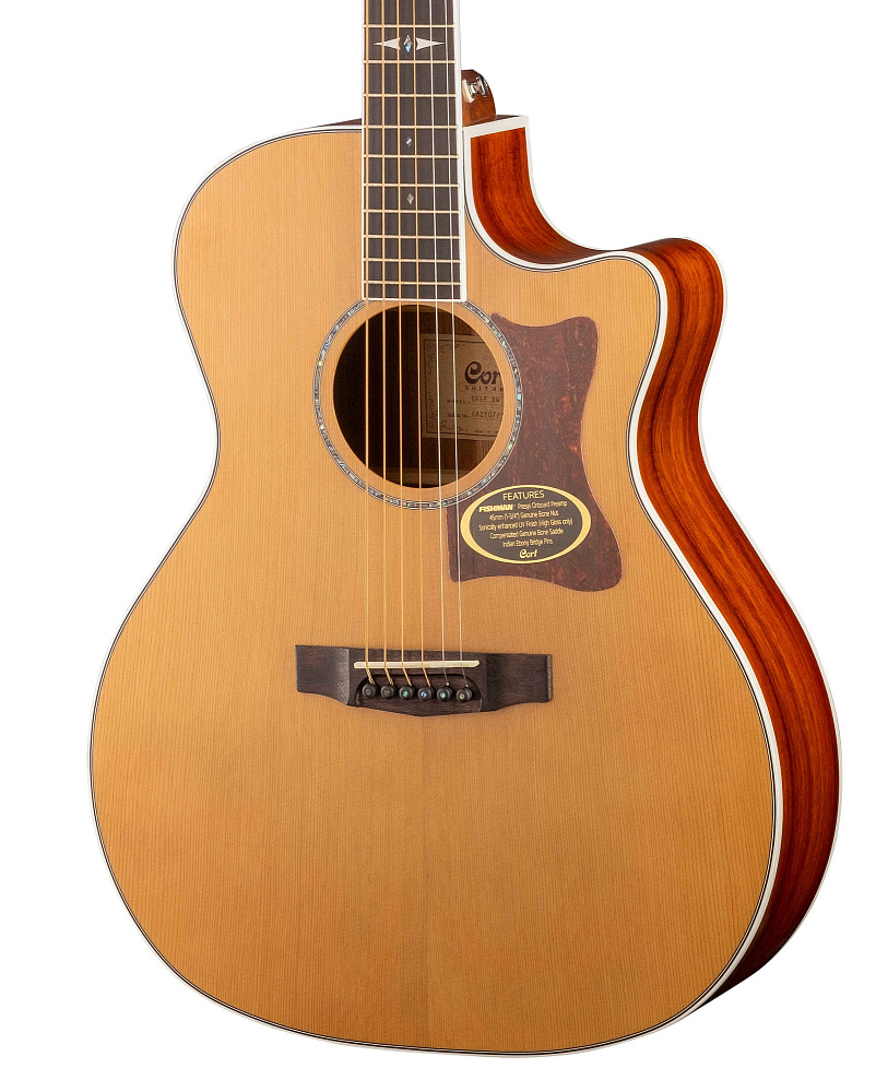 Электроакустическая гитаra Cort GA5F-BW-NS — электроакустическая гитара Grand Auditorium с вырезом. Верхняя дека из массива красного кедра. Задняя дека и обечайка из австралийского черного дерева. Электроника Fishman Presys EQ. Ширина порожка 45 мм. Матовая отделка.