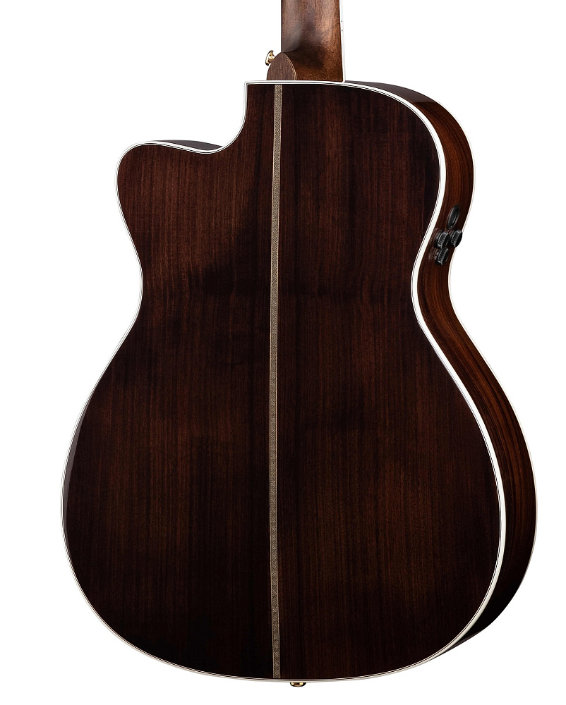 Электроакустическая гитара Cort Gold-OC8-WCASE-NAT — электроакустическая гитара в оркестровом корпусе с вырезом. Верхняя дека из ситхинской ели, задняя дека из бразильского железного дерева. Электроника Fishman Flex Blend, накладка грифа из черного дерева.