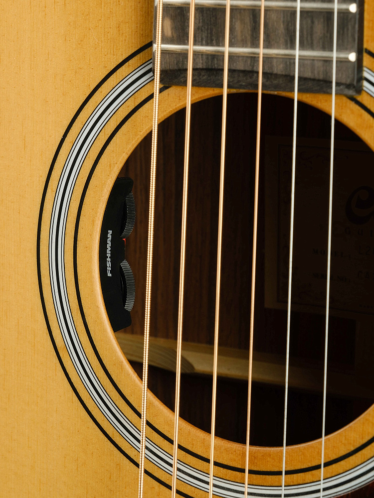 Устанавливаемая внутрь резонаторного отверстия, не нарушающая целостность корпуса, электроника Fishman Sonitone полностью сохраняет естественный резонанс и чистое акустическое звучание инструмента. Элементы управления просты в использовании, производится регулировка только громкости и тембра.