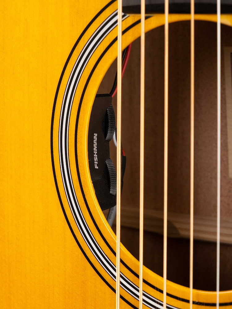 Устанавливаемая внутрь резонаторного отверстия, не нарушающая целостность корпуса, электроника Fishman Sonitone EQ полностью сохраняет естественный резонанс и чистое акустическое звучание инструмента. Элементы управления просты в использовании, производится регулировка только громкости и тембра.