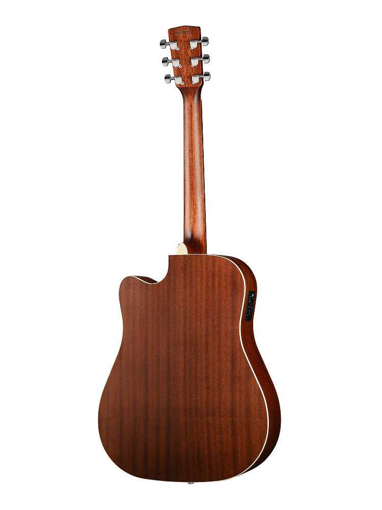 Электроакустическая гитара Cort MR500E-BR-WBAG — электроакустическая гитара с вырезом, коричневая. Верхняя дека из массива ели, задняя дека и обечайка из красного дерева. Электроника Cort CE304T EQ с 3-полосным эквалайзером. Бридж с пазом. Отделка открытые поры для улучшенного резонанса. — Тёплое и естественное звучание для акустических выступлений.