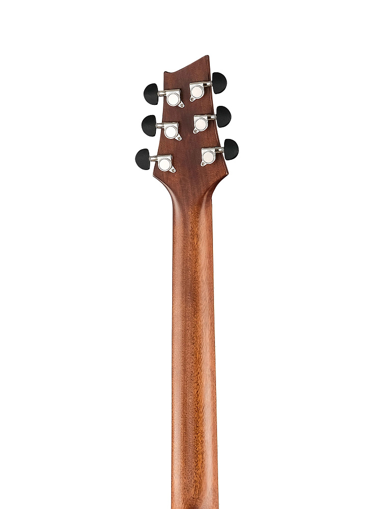 Верхняя дека из массива древесины необходима гитаре для полной реализации всего ее потенциала. Добавление массивной задней деки дополняет звучание инструмента глубиной в пониженных строях. Кроме того, сочетание дек из массива древесины гарантирует улучшение звучания гитары с годами.