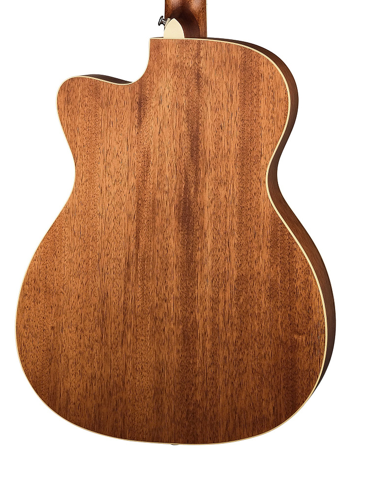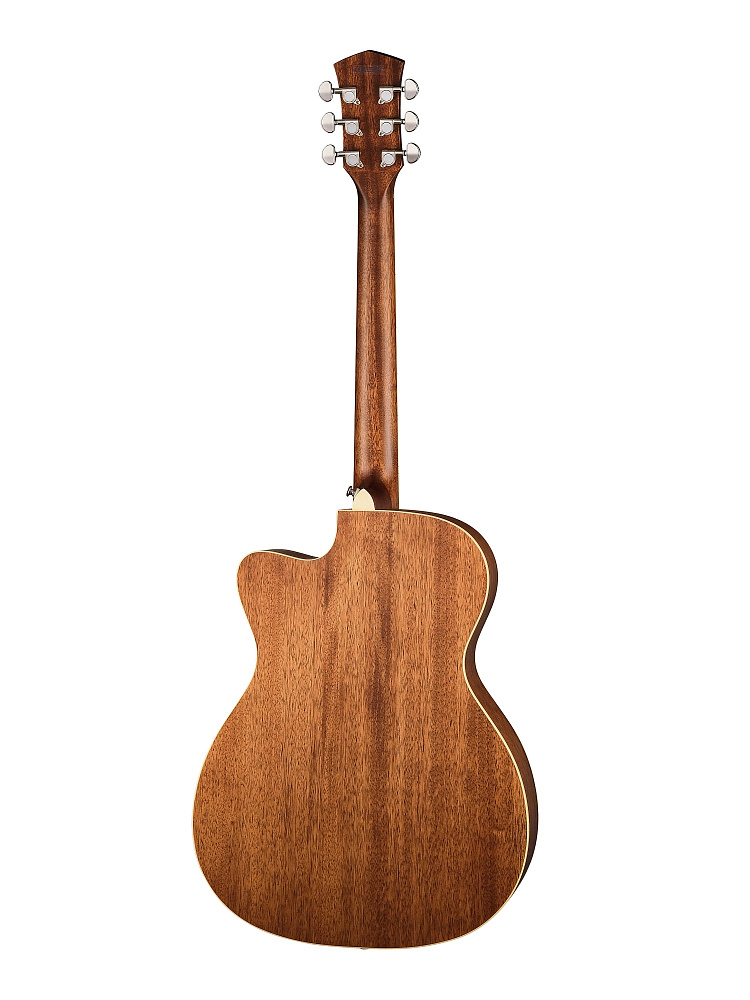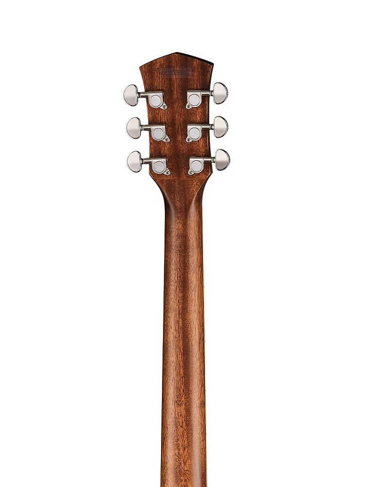Корпус гитары выполнен в форме Orchestra, что обеспечивает сбалансированное и насыщенное звучание. Верхняя дека изготовлена из ели, которая славится своей способностью передавать яркие и четкие тона. Обечайка из махагони добавляет глубину и теплоту звучанию, делая каждую ноту выразительной и насыщенной.