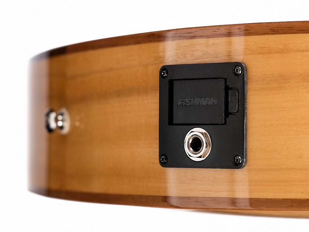 Тонкий корпус (83 х 83 мм) значительно увеличивает комфорт игры, а изогнутая дека компенсирует уменьшенную глубину корпуса и добавляет звучанию объема и открытости.