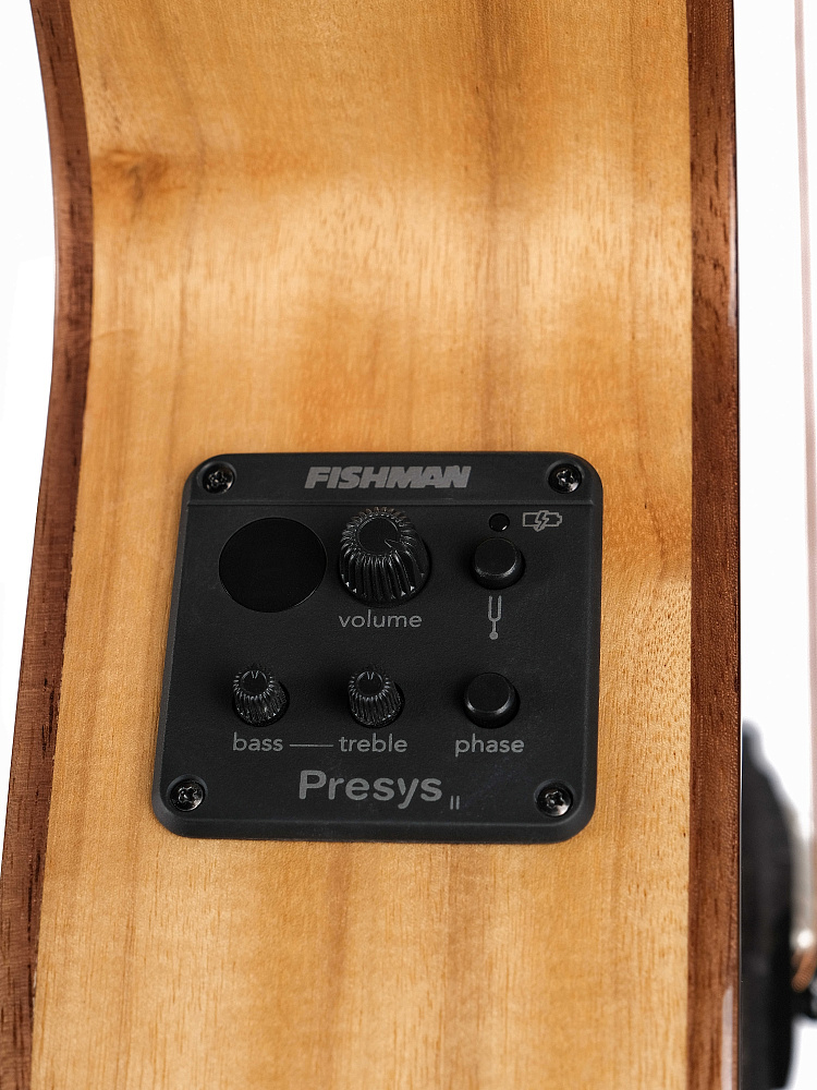 Предусилитель Fishman Presys II с двухполосным эквалайзером, встроенным тюнером и управлением фазой - для эффективной настройки звучания и бесшумной работы во время живых выступлений.