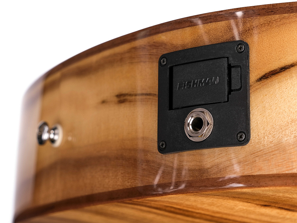 Тонкий корпус (83 х 83 мм) значительно увеличивает комфорт игры, а изогнутая дека компенсирует уменьшенную глубину корпуса и добавляет звучанию объема и открытости.