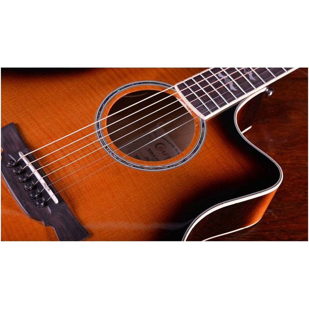 Электроакустическая гитара CRAFTER NOBLE VTG Edition — электроакустическая гитара формата Small Jumbo с корпусом из пламенного клена. Верхняя дека из пламенного клена, гриф из красного дерева. Эксклюзивный внешний вид в цвете санберст. Для ярких выступлений.