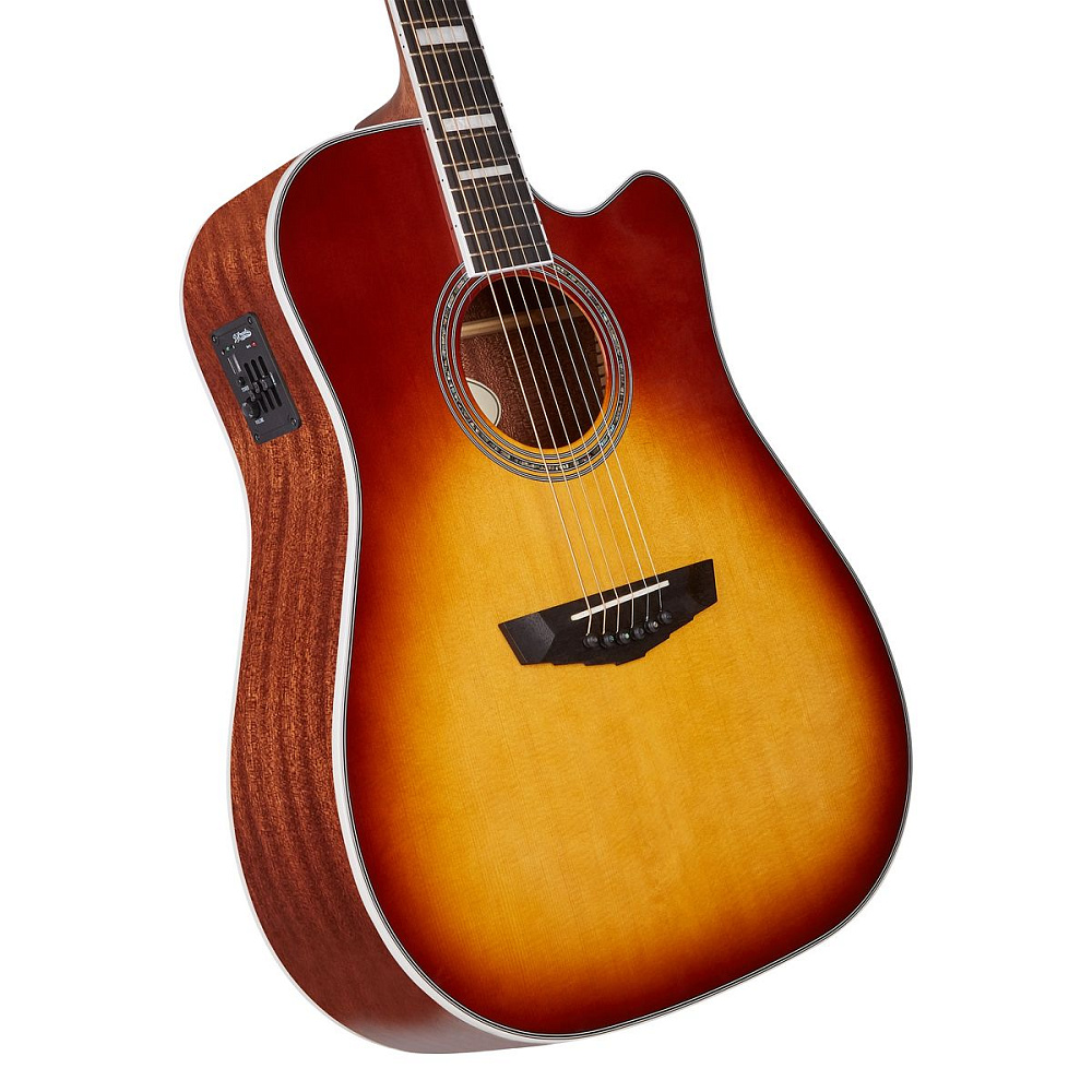 Электроакустическая гитара D'Angelico Premier Bowery ITB — дредноут с вырезом для яркого и громкого звука. Верхняя дека из массива ели, корпус махагони. Встроенный преамп D'Angelico с тюнером. Цвет санберст.