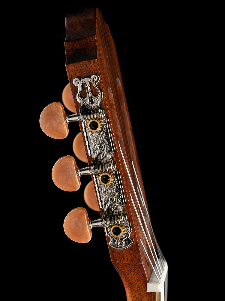 Верхняя дека изготовлена из ели, благодаря чему инструмент имеет резонансное звучание, которое действительно улучшается с годами.