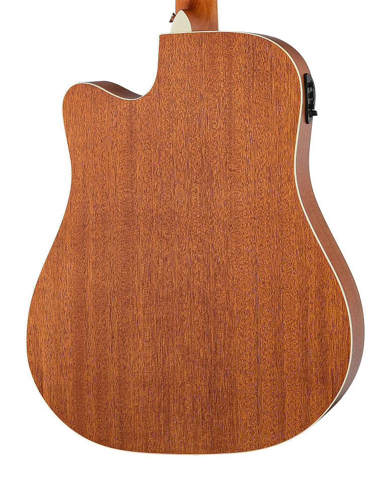 Задняя дека и обечайки из индонезийского красного дерева, известного своим чистым звуком и глубокими, четко выраженными басовыми нотами.