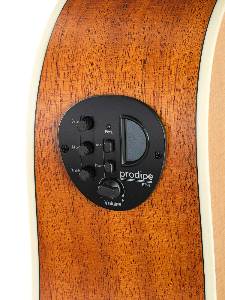 Электроакустическая гитара Prodipe SD25 (Дредноут с вырезом). Верхняя дека из ели, корпус из красного дерева. Предусилитель EP-1 с эквалайзером и тюнером. Чистый и естественный звук с хорошей проекцией для сцены.