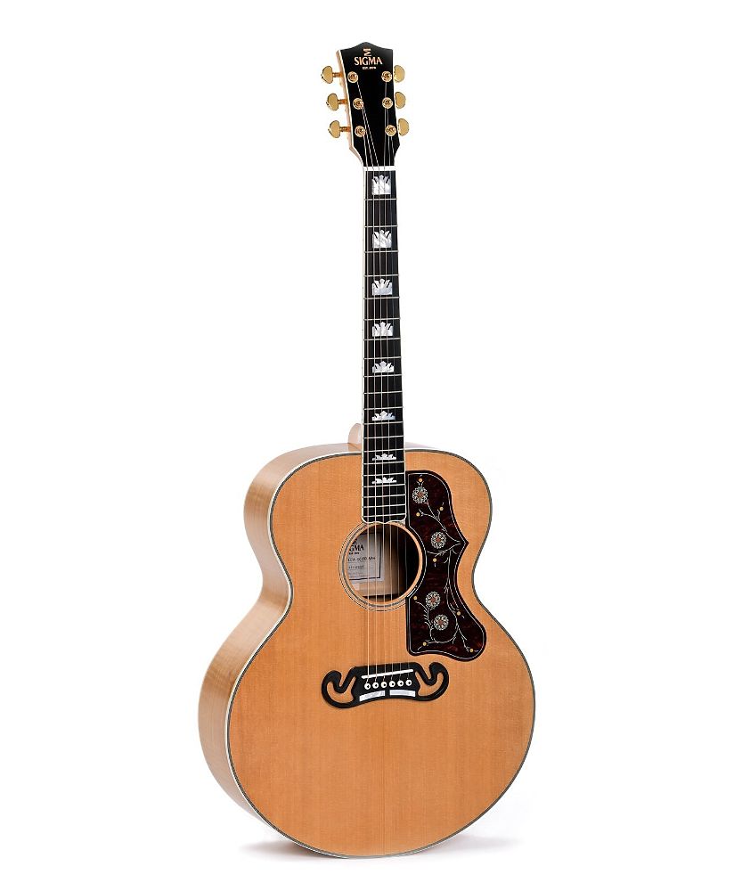 Электроакустическая гитара Sigma GJA-SG200-AN с чехлом — электроакустическая гитара Grand Jumbo. Верхняя дека из массива ситхинской ели, корпус из огненного клена. Электроника Fishman Sonitone. Натуральный цвет. Громкий, сбалансированный звук с глубокими басами, идеальна для фингерстайла.