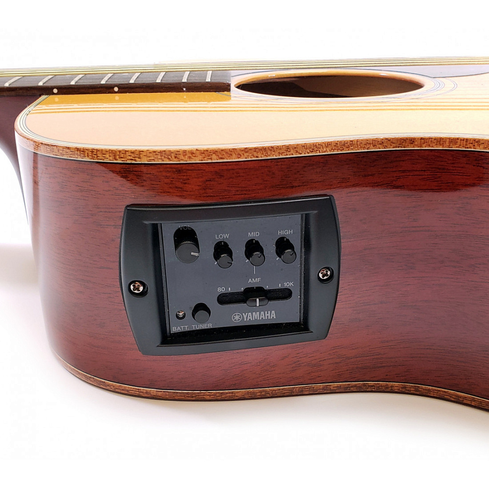 A1M, традиционная гитара с вестерн-корпусом, имеет цельный топ из ели ситка с гребенчатой скобой и заднюю и боковые стенки из красного дерева. Оригинальный пьезозвукосниматель SRT от Yamaha обеспечивает надежное звучание при подключении.